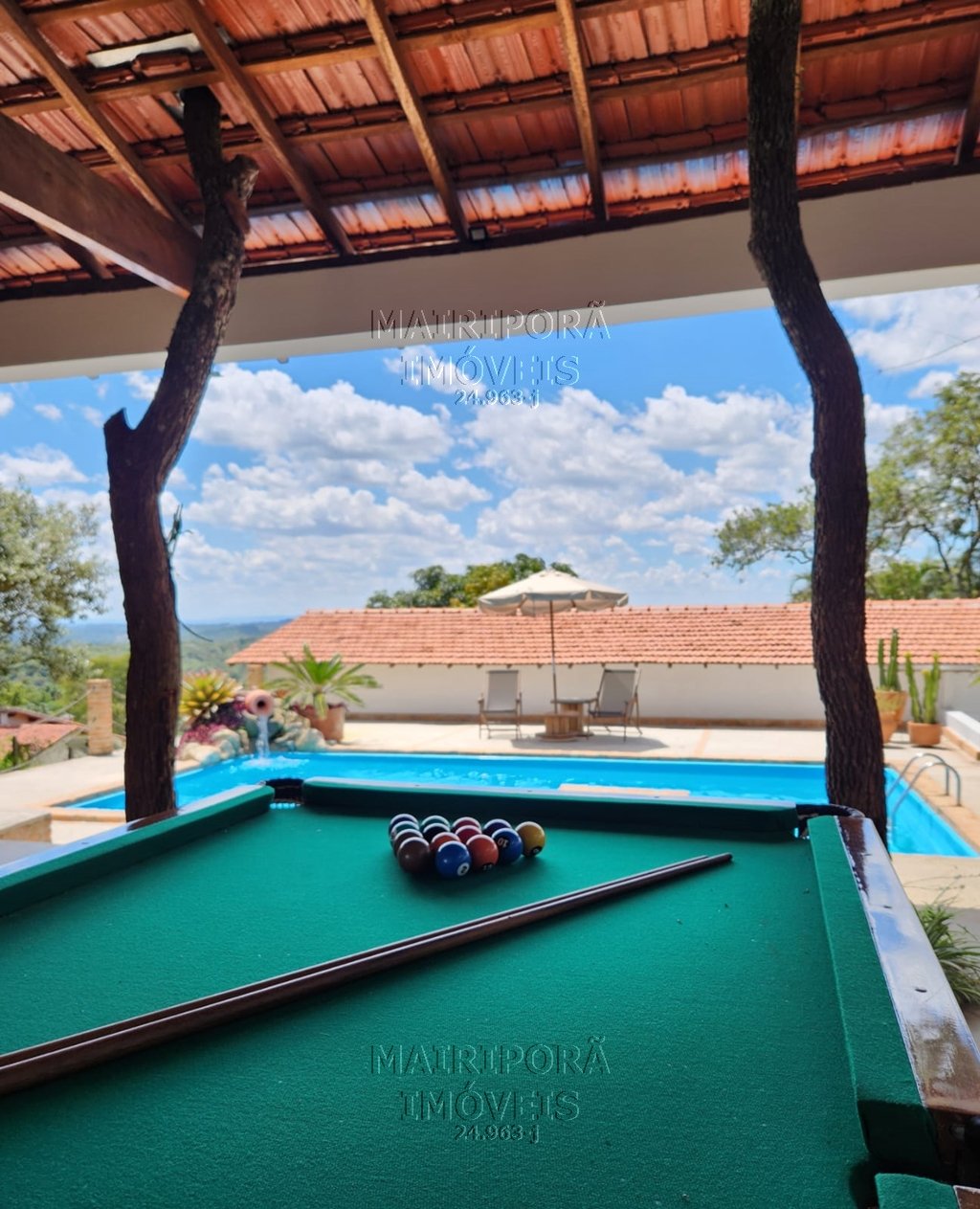 Subindo alguns poucos lances de escadas, o LAZER SUPREENDE com charmosa área gourmet completa, piscina com cascata em jarro, espaço da sinuca, cozinha caipira com fogão e forno a lenha, churrasqueira e um prático banheiro de apoio. Nos fundos, outro banheiro atende ao campo de futebol gramado.